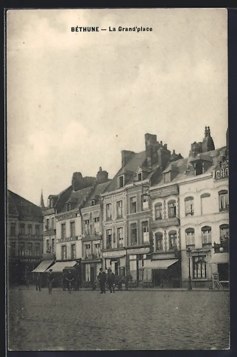 AK Béthune, La Grand`place avec bâtiments historiques et passants