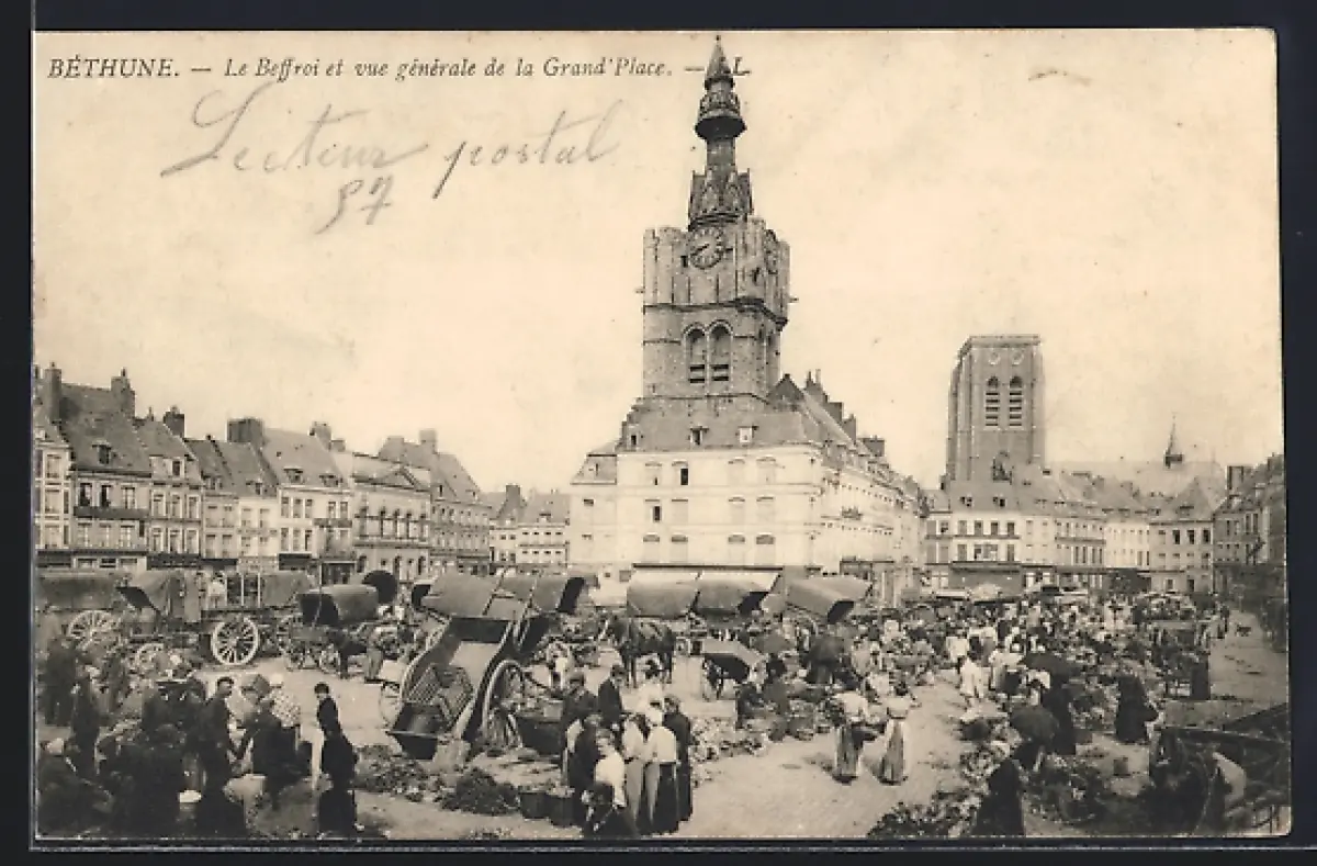 AK Béthune, le Beffroi et vue générale de la Grand'Place