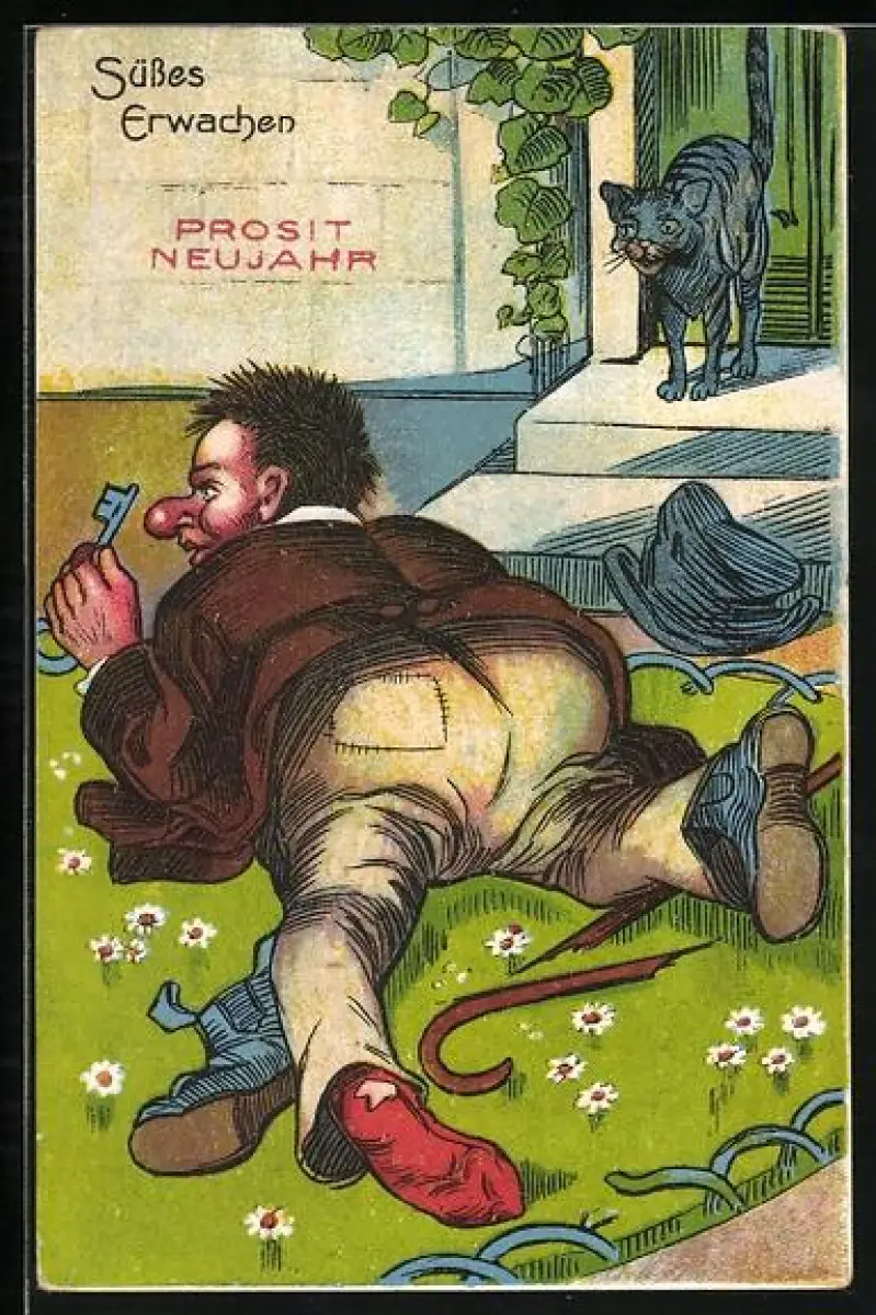 AK Betrunkener Mann erwacht vor seiner Haustür, Trinkerhumor