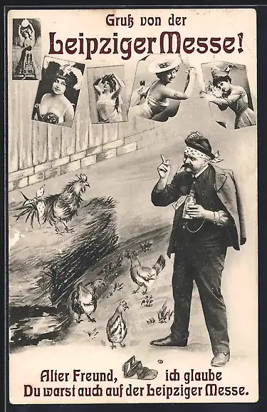 AK Betrunkener Mann fragt einen Hahn, ob die Hennen ihn auch so ausgenommen haben, wie ihn die Frauen