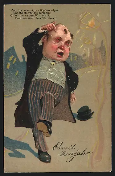 AK Betrunkener Mann sieht nur noch gebogene Strassenlaternen, Trinkerhumor