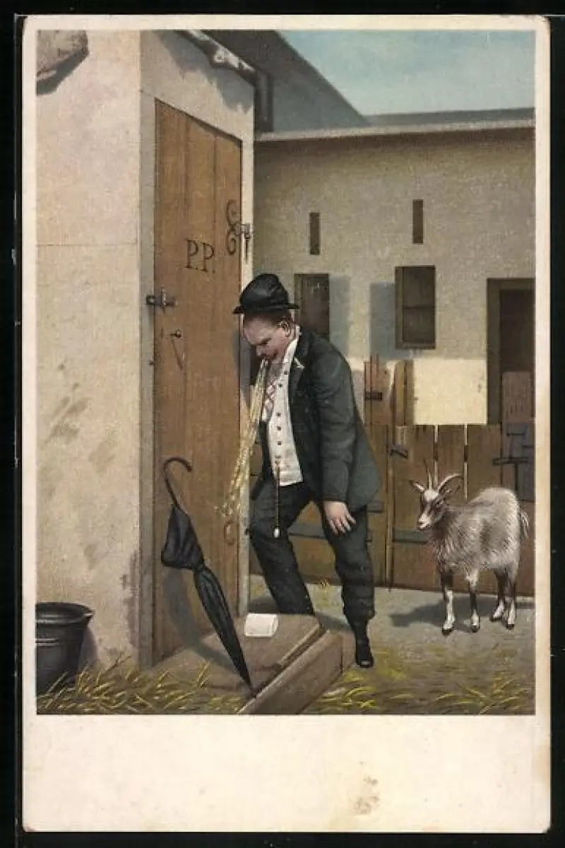 AK Betrunkener Mann übergibt sich vor Toilettentür