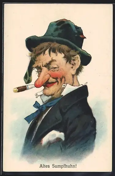 AK Betrunkener Mann wird zerfledderter Kleidung und einer Zigarre