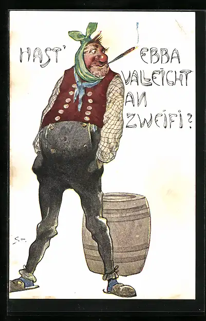 AK Betrunkener mit Zahnweh und Zigarrenspitze