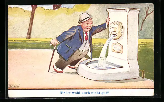 AK Betrunkener spricht mit Wasserstrahl-Brunnenfigur