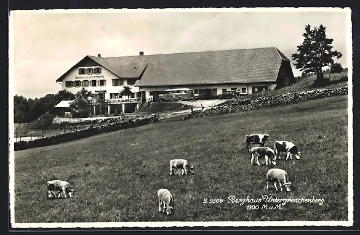 AK Bettlach /SO, Untergrenchenberg, Hotel Berghaus Untergrechenberg mit Kühen