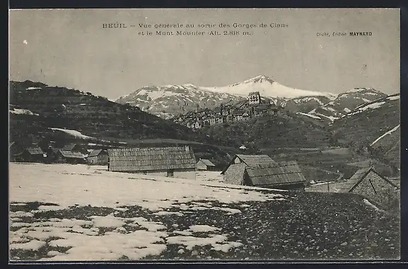 AK Beuil, Vue générale au sortir des Gorges de Cians et le Mont Mounier Alt. 2818 m