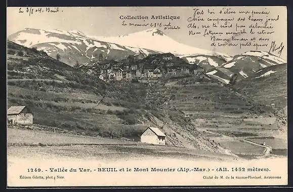 AK Beuil, Vue sur le village et le Mont Mounier dans la vallée du Var, Alt. 1452 mètres