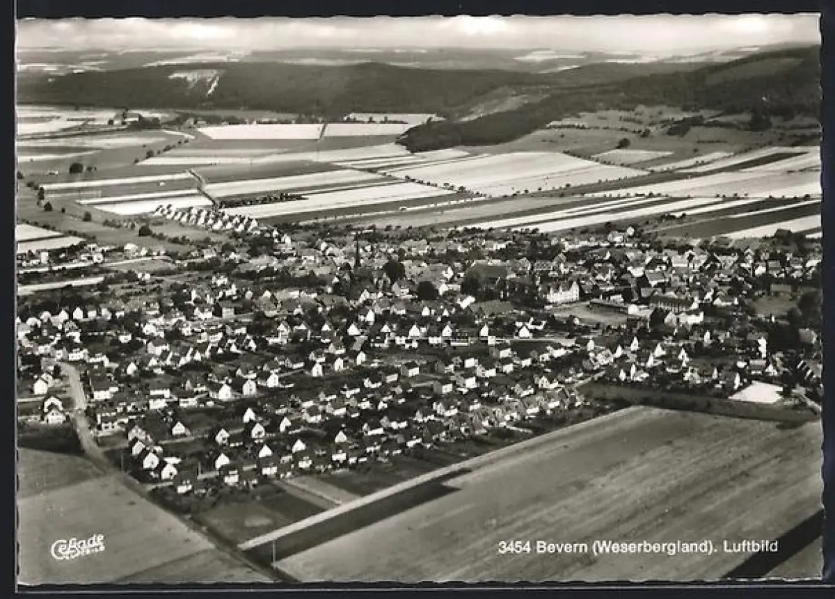 AK Bevern / Weser, Weserbergland, Fliegeraufnahme des Ortes mit Umgebung