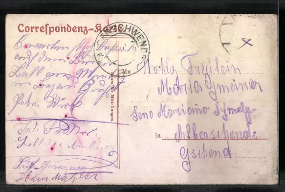 alte Ansichtskarte, gelaufen, Briefmarke entfernt, Eckknick oben links, Abriebspuren an den linken Ecken, guter Zustand