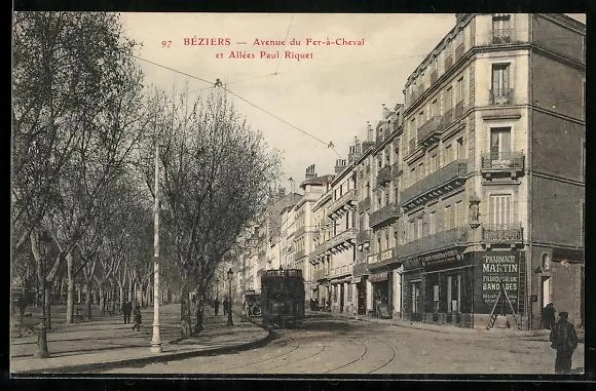 AK Béziers, Avenue du Fer-à-Cheval, Strassenbahn