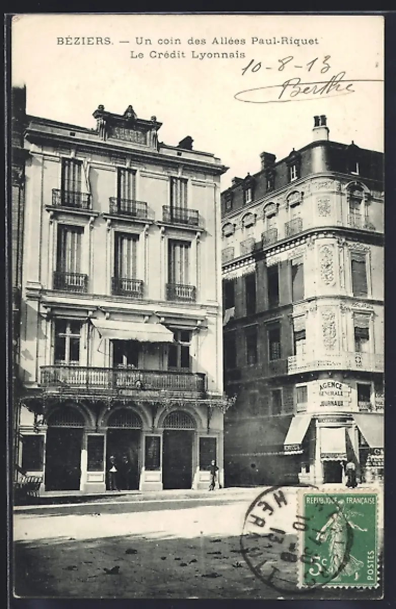 AK Béziers, Un coin des Allées Paul-Riquet, Le Crédit Lyonnais