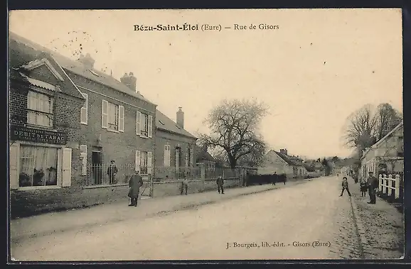 AK Bézu-Saint-Éloi, Rue de Gisors avec passants et maisons en briques