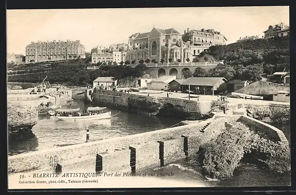 AK Biarritz, le port de pêcheurs et une vue d`ensemble, des gens sur la navette