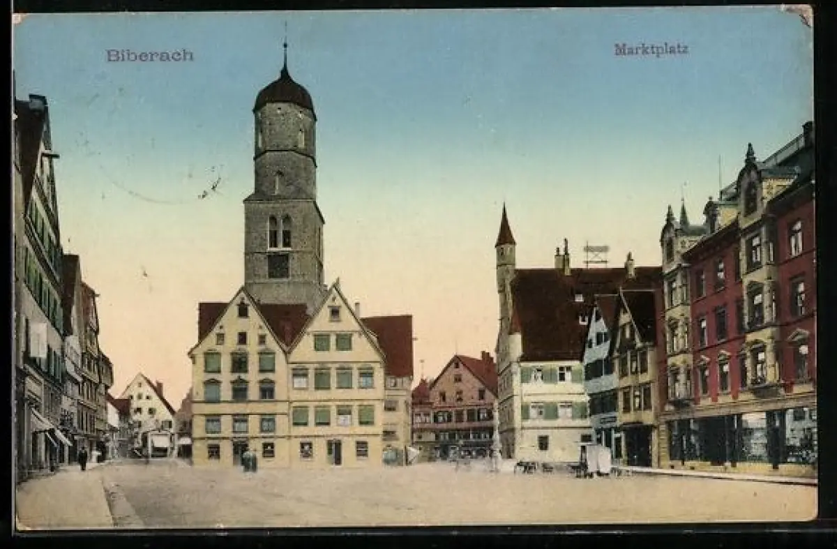 AK Biberach / Riss, Marktplatz mit Turmgebäuden