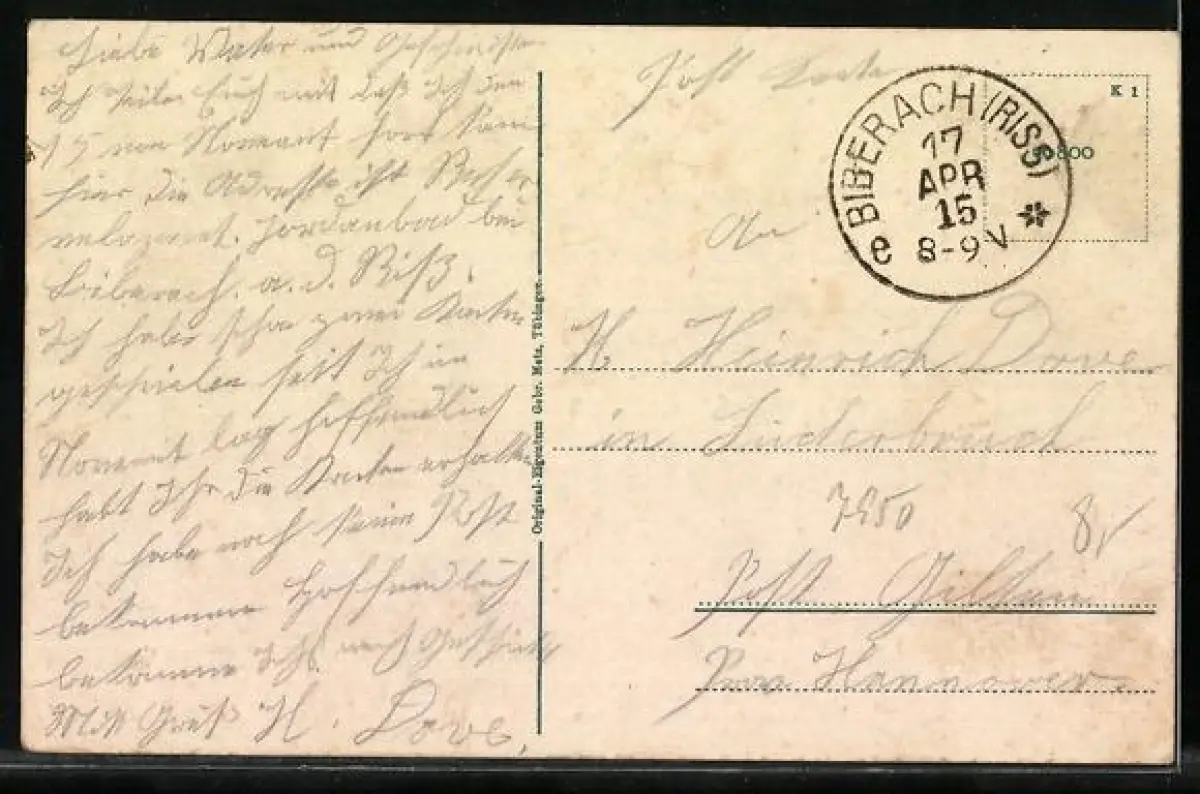 alte Ansichtskarte, gelaufen 1915, Abriebspur oben rechts, guter Zustand