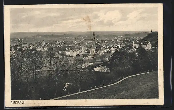 AK Biberach a. R., Gesamtansicht mit Feldern aus der Vogelschau