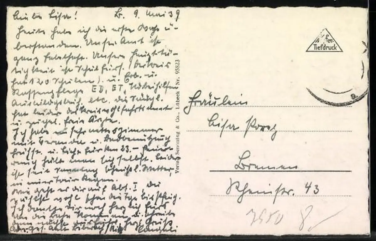 alte Ansichtskarte, gelaufen 1939, Briefmarke entfernt, guter Zustand