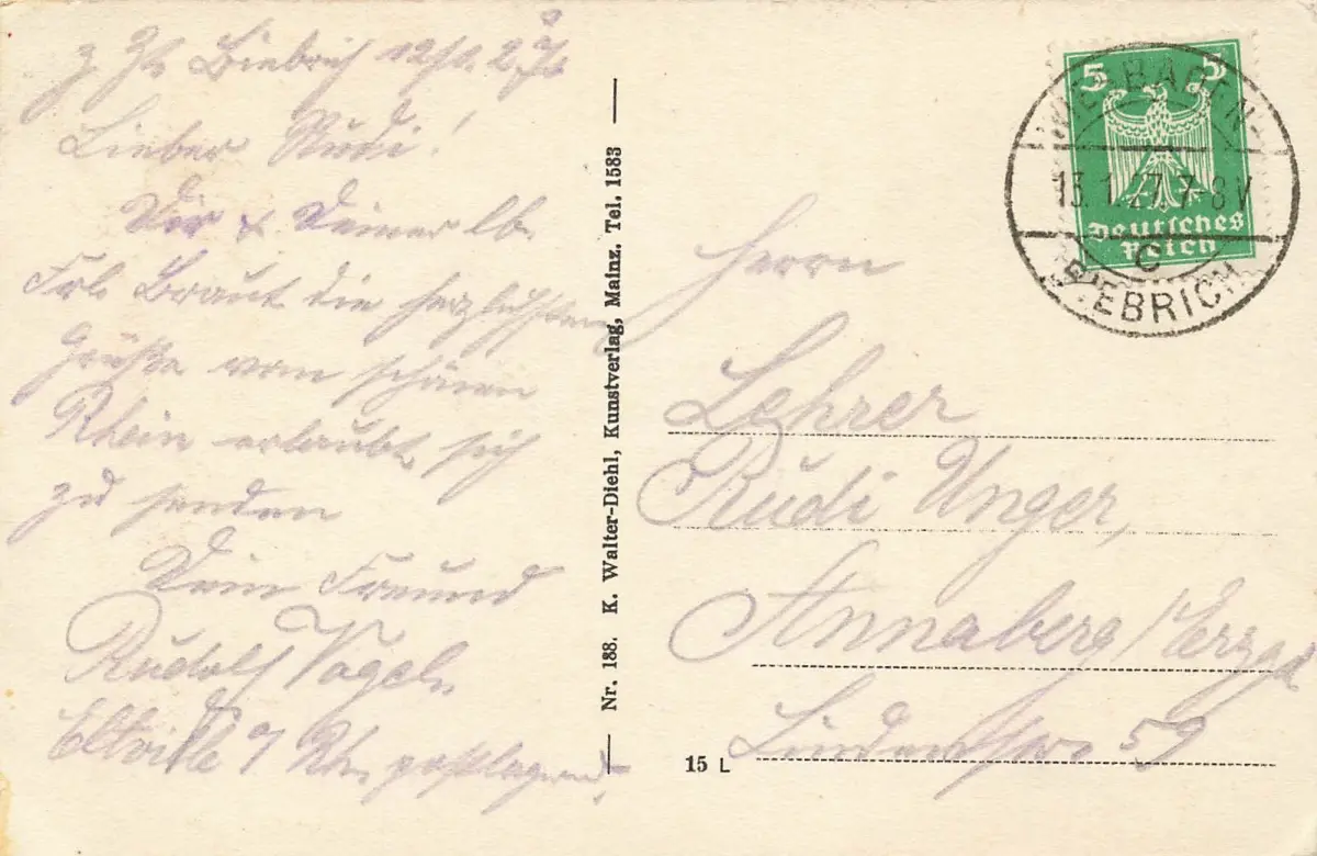 Rückseite: gelaufen 1927