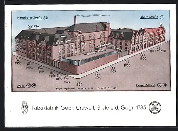 AK Bielefeld, Tabakfabrik der Gebr. Crüwell, Neustädter Strasse