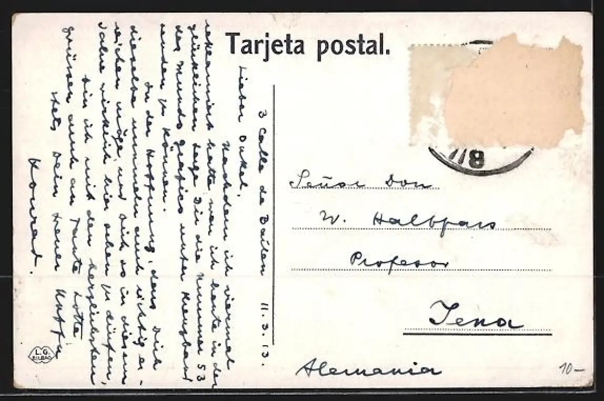 alte Ansichtskarte, gelaufen, Briefmarke entfernt, rückseitig Oberflächenschaden, guter Zustand