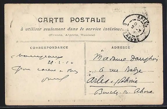 Personenbezogene Daten auf der Rückseite der Karte wurden durch blauen Textmarker unkenntlich gemacht. Die blauen Stellen sind auf die Vorderseite durchgeweicht und wirken sich negativ auf das Postkartenfoto aus