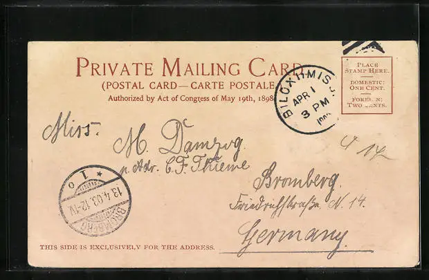 alte Ansichtskarte, gelaufen 1903, Briefmarke entfernt, Eckknicke rechts, guter Zustand