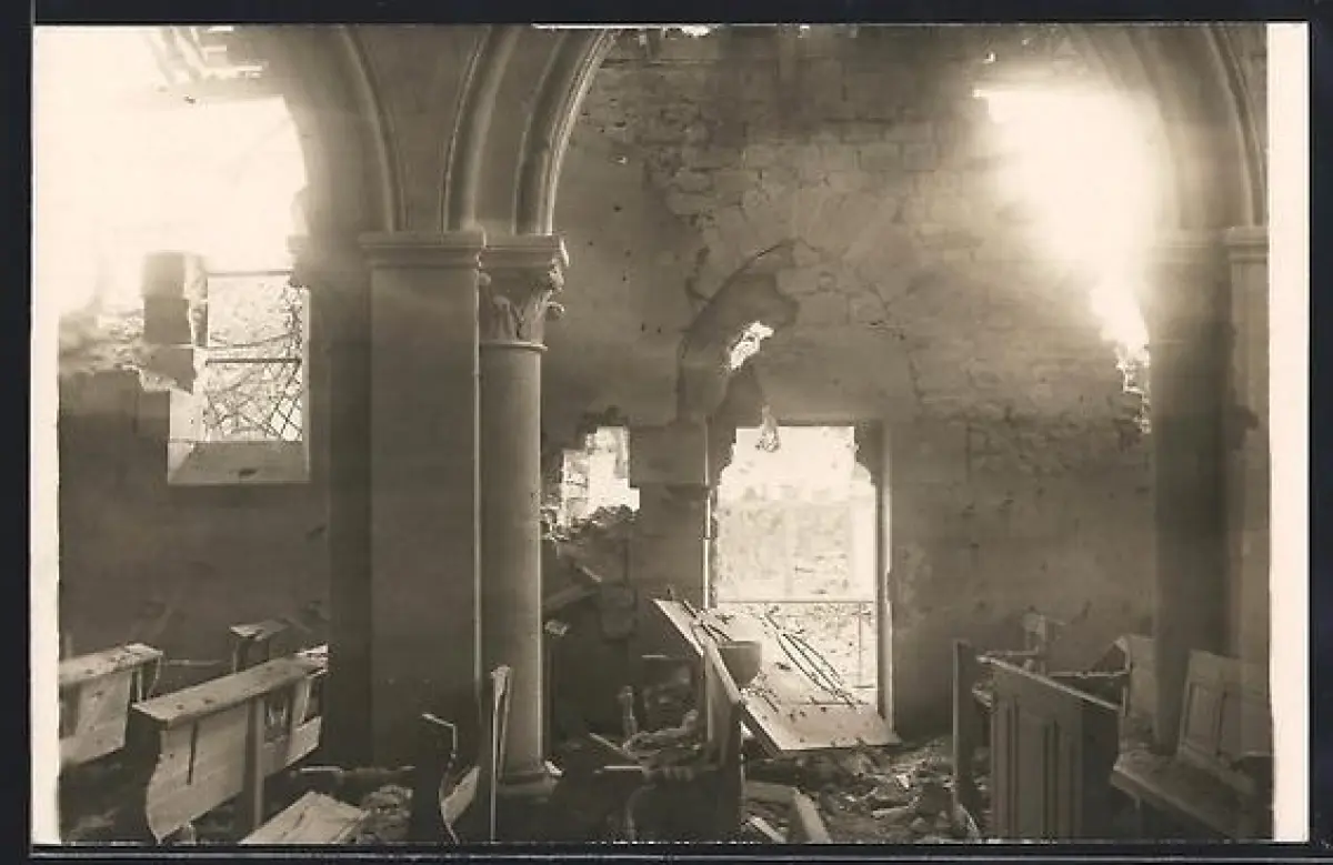 AK Binarville, Intérieur de l`église en ruines après des destructions pendant la guerre