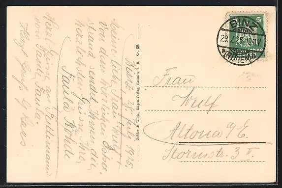 gelaufen 1925, Eckknick oben li., guter Zustand