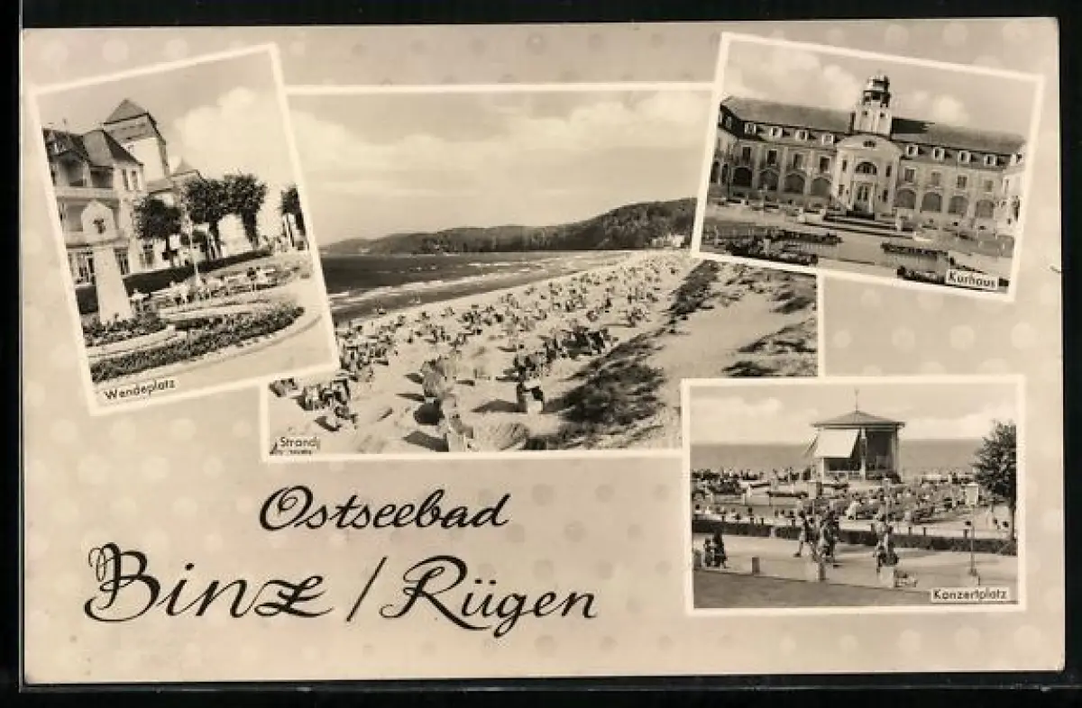AK Binz /Rügen, Strand, Kurhaus, Konzertplatz