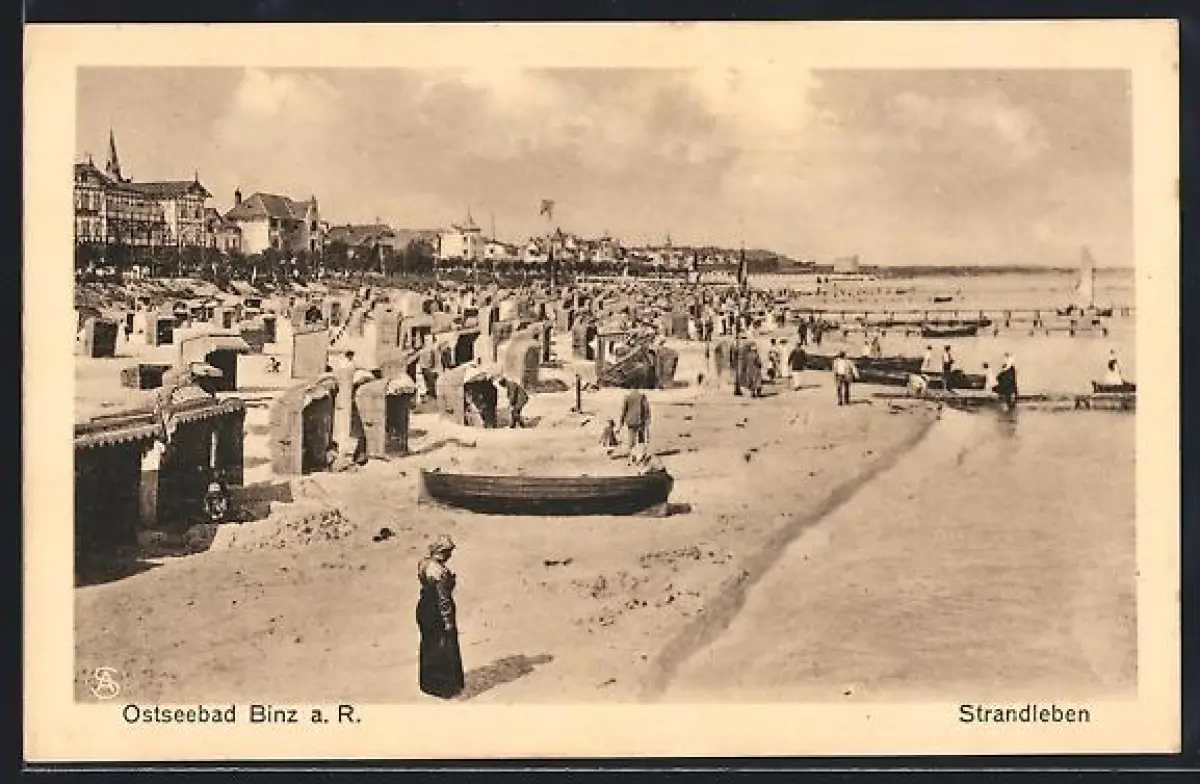 AK Binz a. R., Ostseestrand mit Strandkörben und Urlaubern