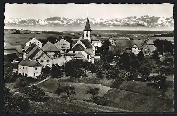 AK Birkendorf /Schwarzw., Ortsansicht mit Alpenpanorama