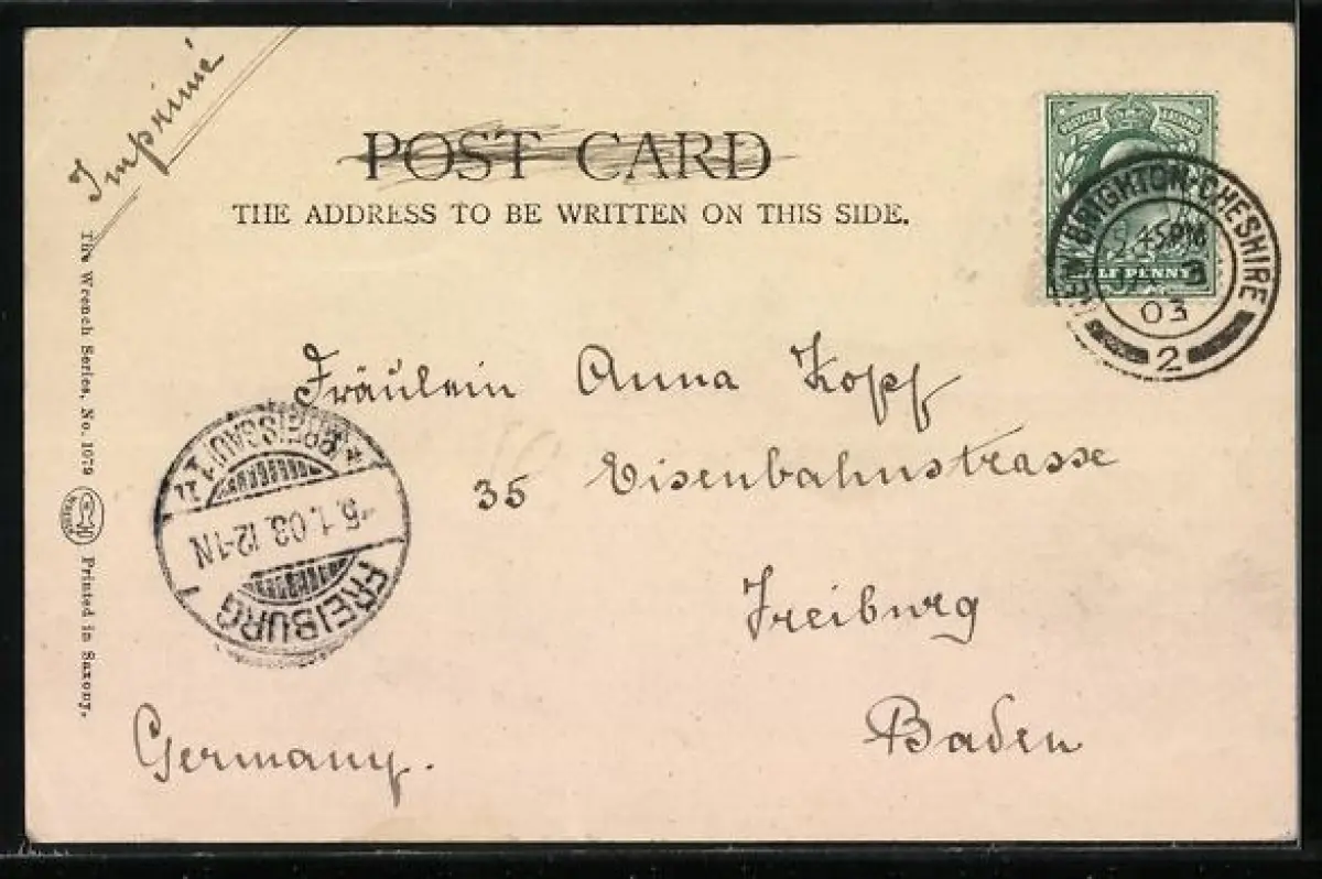 gelaufen 1903, Eckknick re. oben, guter Zustand