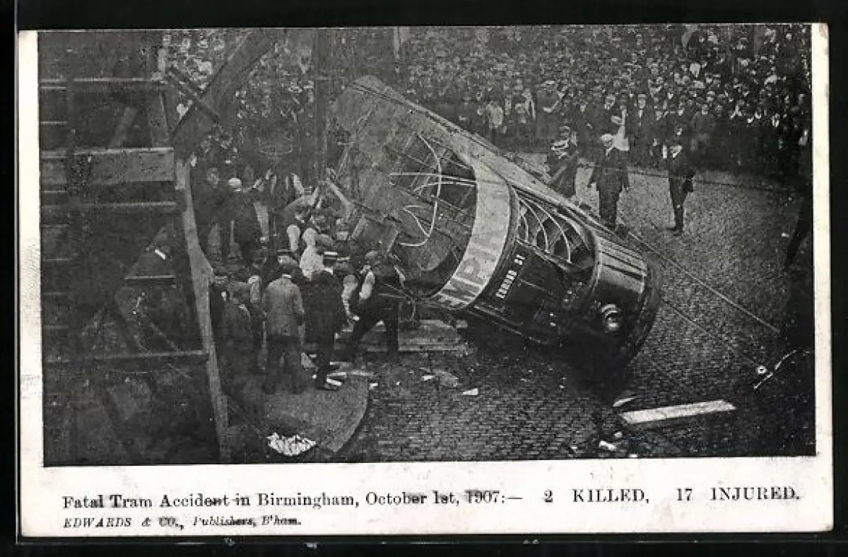 AK Birmingham, Fatal Tram Accident 1907, Strassenbahn