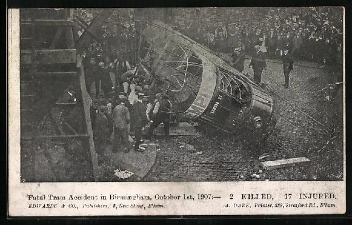 AK Birmingham, Fatal Tram Accident 1907, Strassenbahn