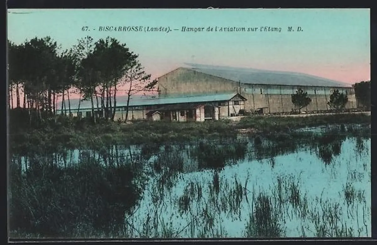 AK Biscarrosse /Landes, Hangar de l`aviation sur l`étang
