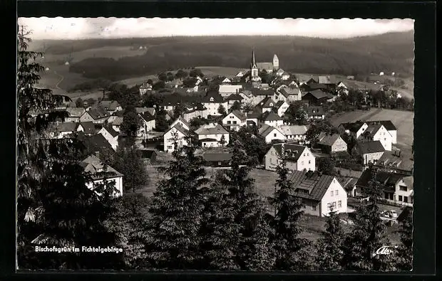 AK Bischofsgrün /Fichtelgeb., Totalansicht mit Waldblick