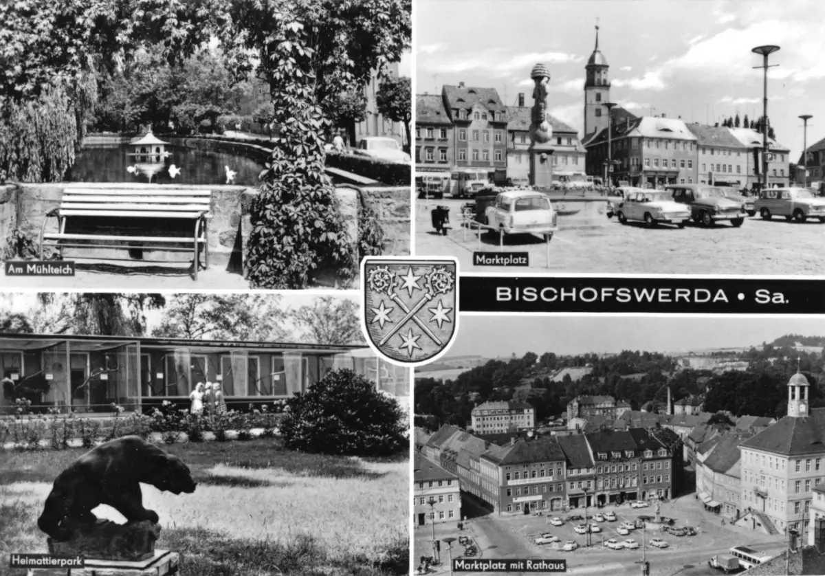 Ansichtskarte Bischofswerda Sachs. vier Abb. - Am Mühlteich, Marktplatz, Heimattierpark, Marktplatz mit Rathaus Erhaltung I-II postalisch gelaufen, gestempelt: Bautzen, unleserlich Druckvermerk: 1969 Herstellungsland: DDR Verlag: VEB Bild und Heimat, Reichenbach i. V. - 12/5115