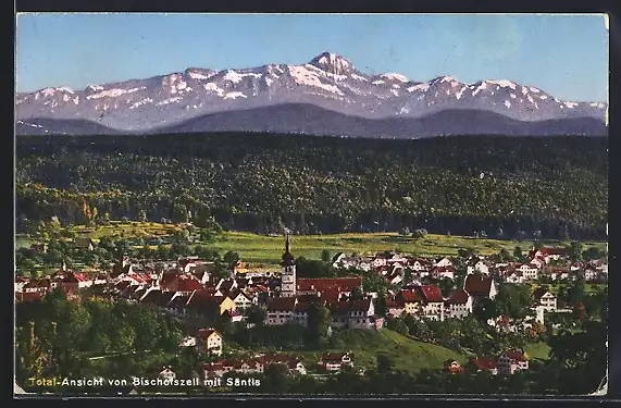 AK Bischofszell, Totalansicht mit Säntis aus der Vogelschau