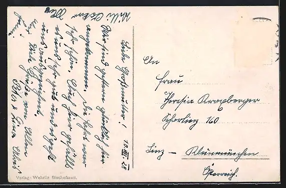 alte Ansichtskarte, gelaufen 1928, Briefmarke entfernt, rückseitig Oberflächenschaden, Eckknick unten re., guter Zustand
