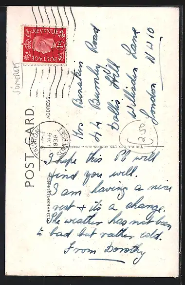 alte Ansichtskarte, gelaufen 1938, Abriebspur li. unten, guter Zustand