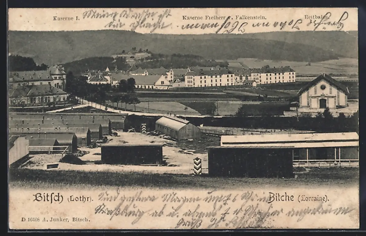 AK Bitche /Lorraine, Vue de la caserne Freiherr von Falkenstein et paysage environnant