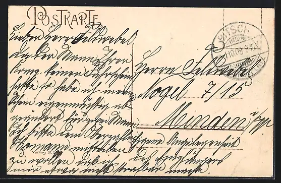 alte Ansichtskarte, gelaufen 1908, Bugspur oben mittig, guter Zustand