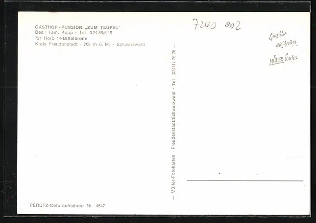 AK Bittelbronn, Gasthof Pension Zum Teufel, Gartenansicht, in den Gasträumen