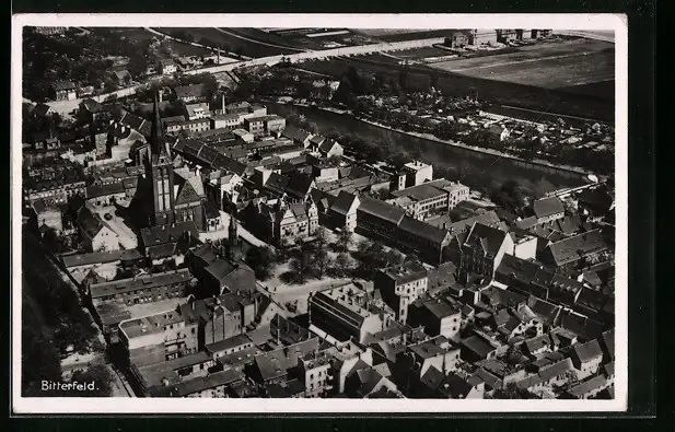 AK Bitterfeld, Teilansicht mit Kirche