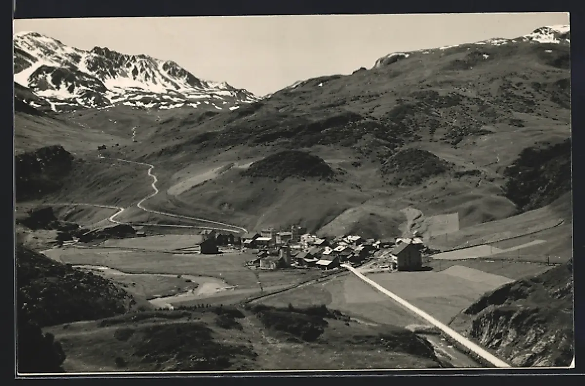 AK Bivio am Julierpass, Gesamtansicht mit Umgebung aus der Vogelschau
