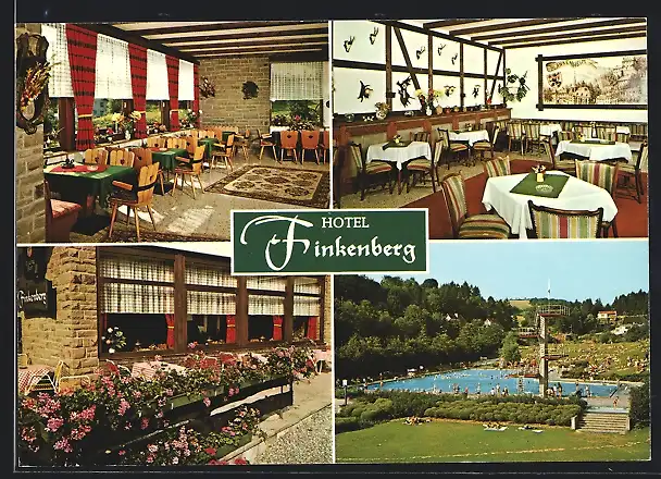 AK Blankenheim /Ahr, Hotel Restaurant Finkenberg, Innenansichten u. Freibad