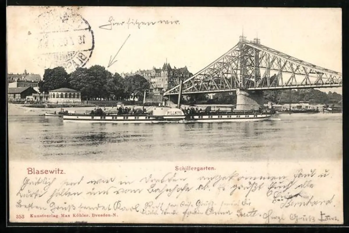 AK Blasewitz, Raddampfer Pillnitz vor dem Restaurant Schillergarten