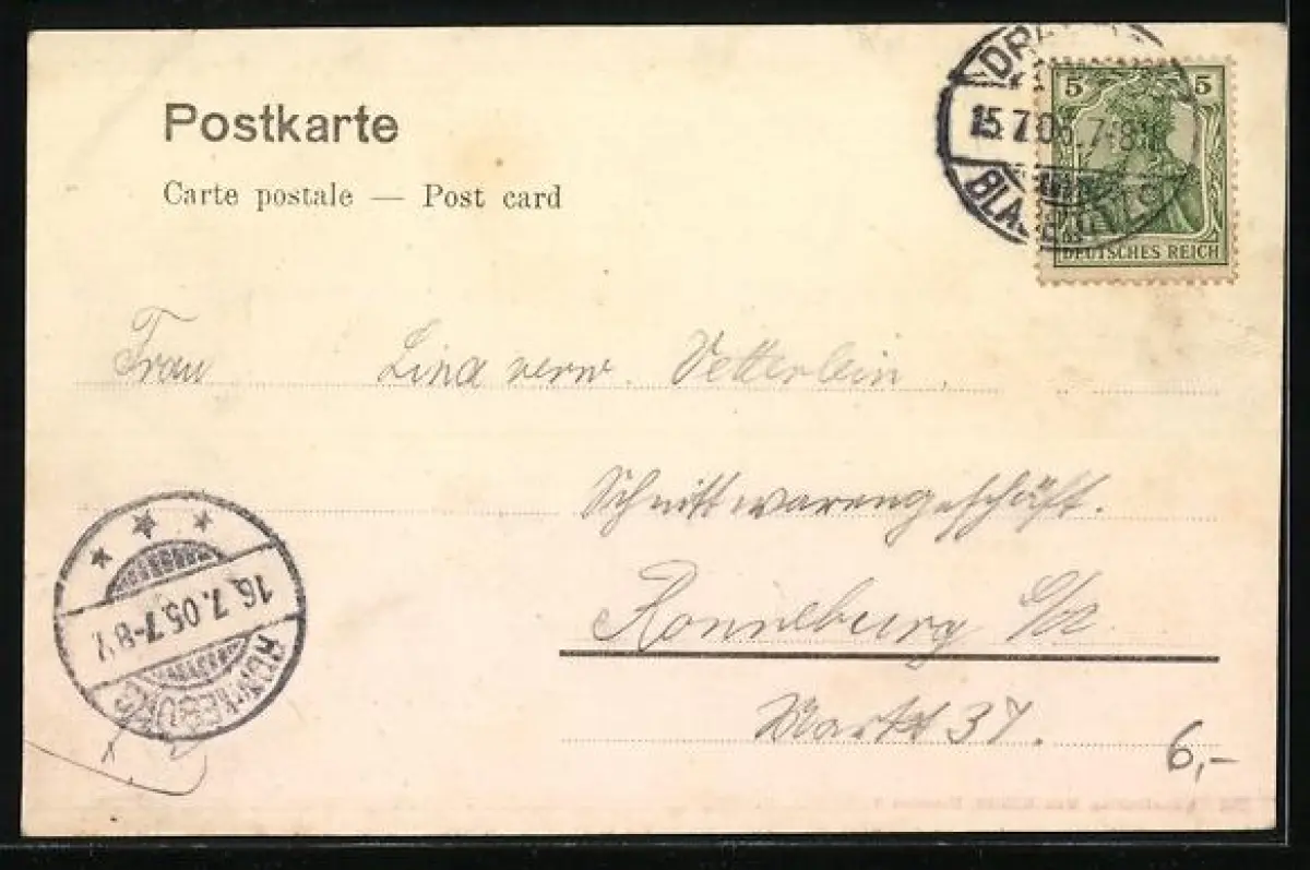 alte Ansichtskarte, gelaufen 1905, Stempelspur, guter Zustand
