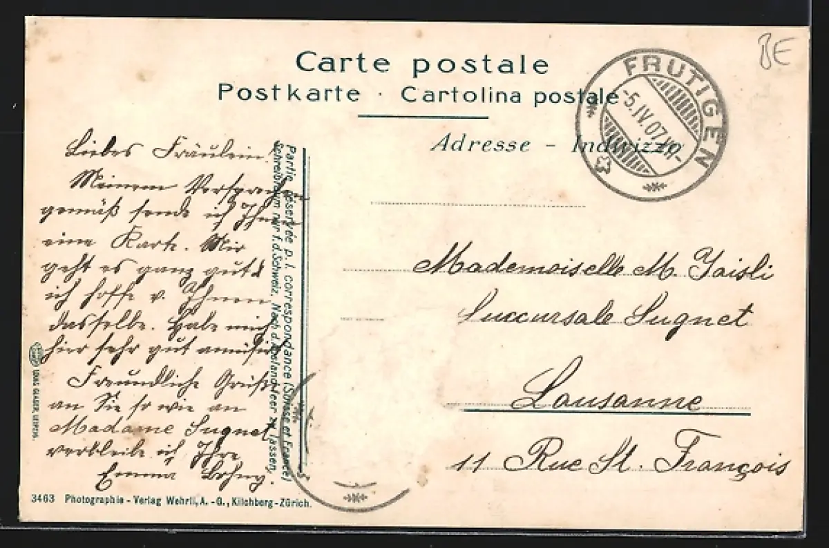 alte Ansichtskarte, gelaufen 1907, Briefmarke entfernt, rückseitig Oberflächenschaden, guter Zustand